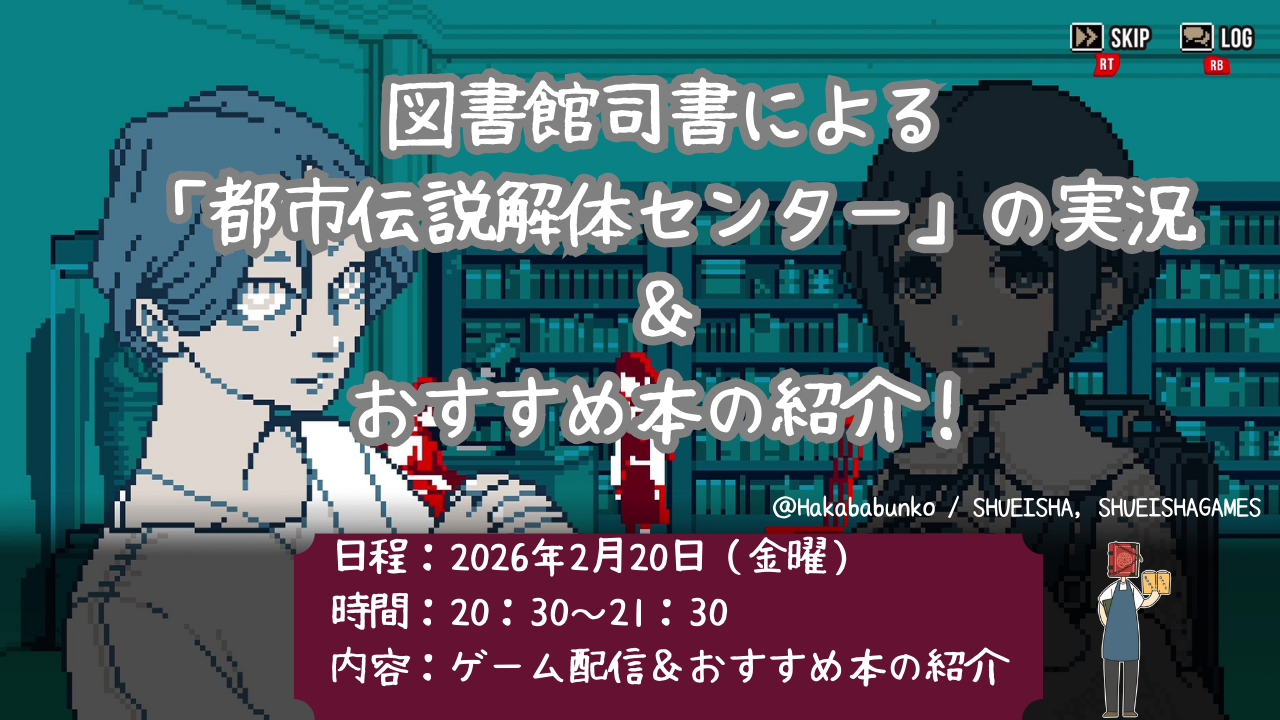 いわゆるゲーム配信(実況)を行いつつ、ゲームの内容と本がつながるポイントを紹介していきます。