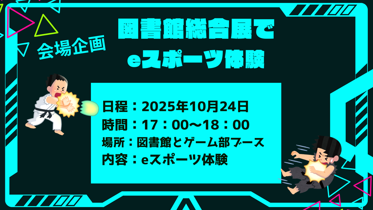 図書館とゲーム部のブースで、有志での機器持ち込みによるeスポーツの体験&交流を行います。