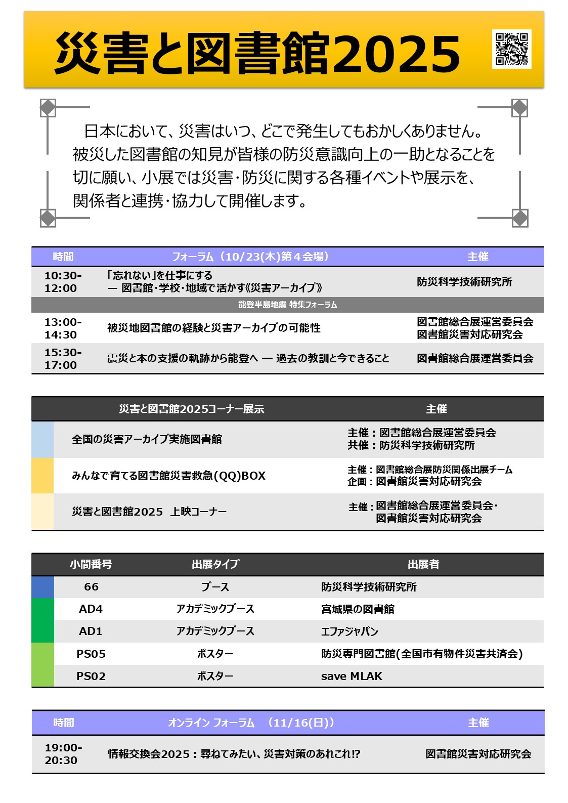 【災害と図書館2025】連続フォーラム 10/23(木)13:00-14:30
