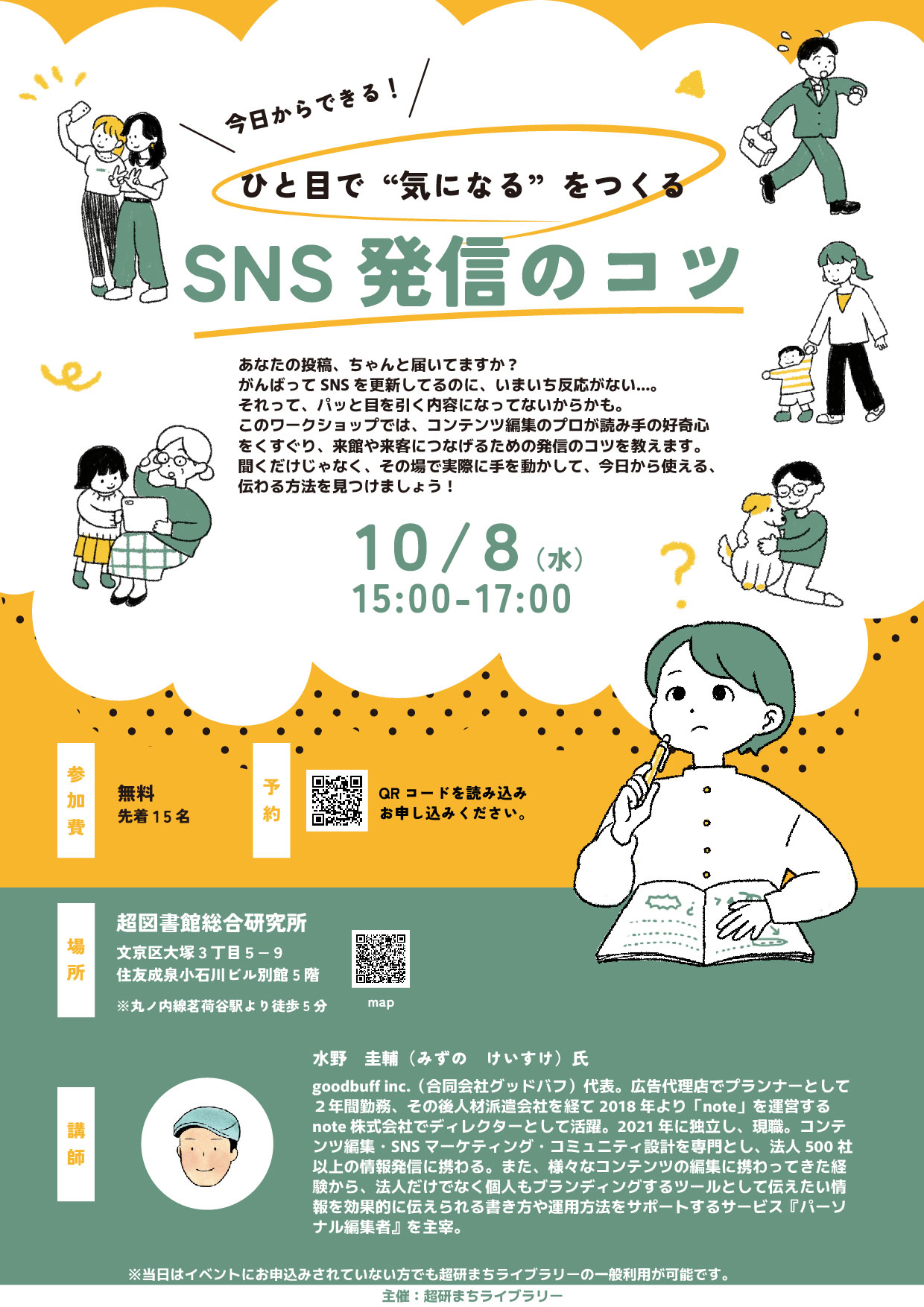 このワークショップでは、コンテンツ編集のプロが読み手の好奇心をくすぐり、来館や来客につなげるための発信のコツを教えます。